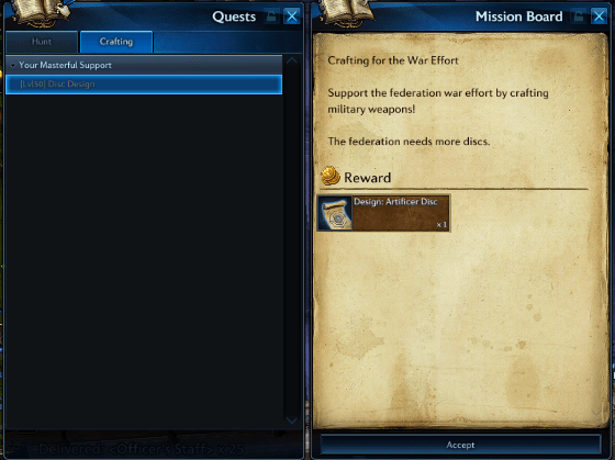 Второй квест берется в процессе крафтинга. НИП выдаст вам уникальные редкие материалы или наборы, необходимые для только что полученного вами рецепта. Вам нужно будет купить некоторые дополнительные материалы у торговцев-крафтеров, использовать крафтинговый интерфейс для создания 25 единиц предмета, а затем, в конце концов, отдать их для завершения квеста.
