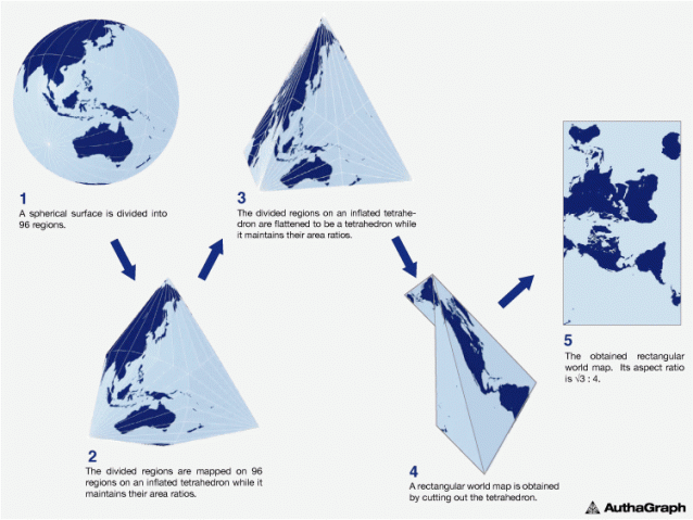 Этапы составления проекции AuthaGraph World Map